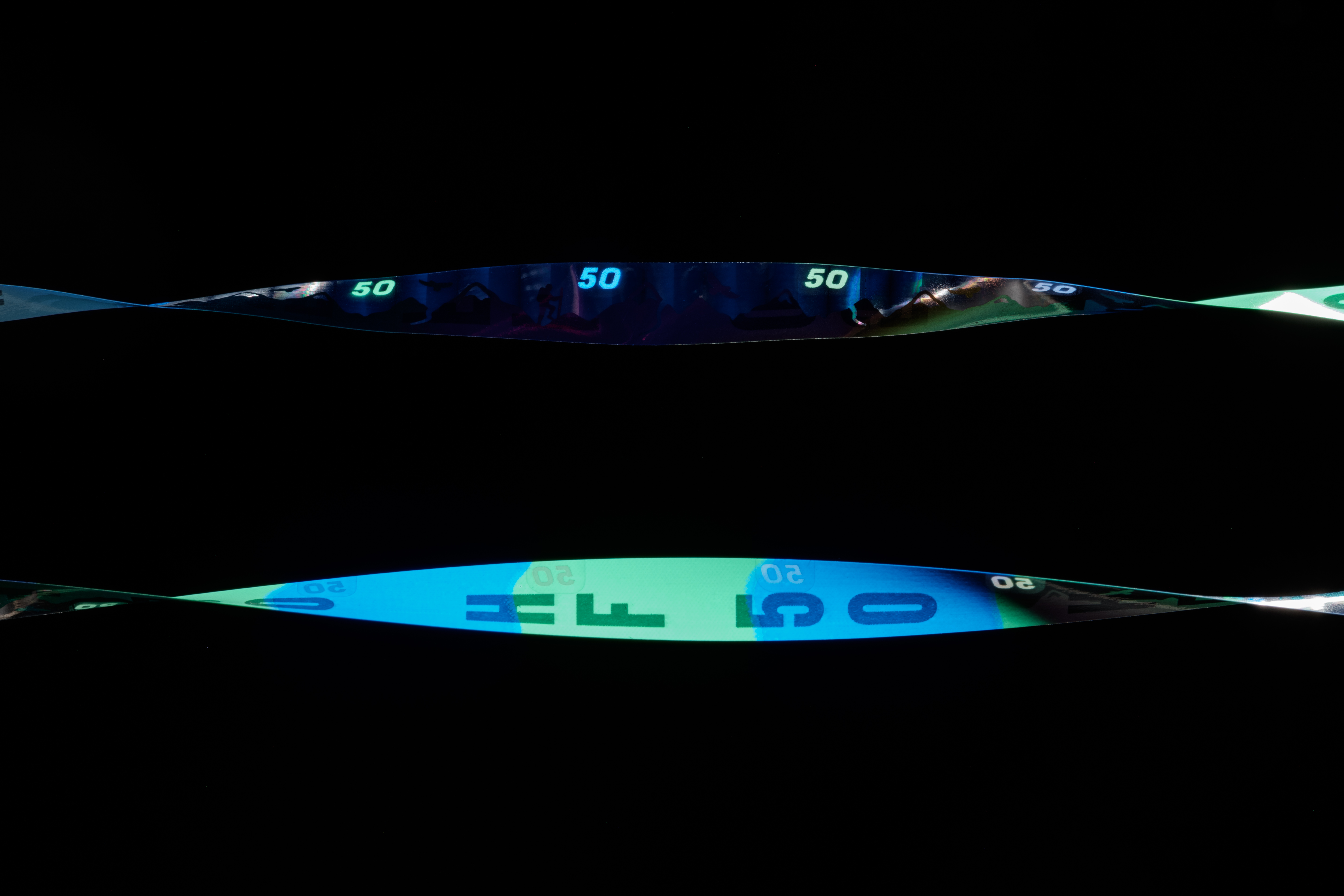 Coactive® is an extremely robust high-security thread with enhanced and easy verification by the public through its distinctive design. Choose one out of six intense colors (see ColorSwitch™ P Series) in combination with an individually designed microstructure featuring a brilliantly dynamic effect. Fluorescence and magnetism can be added to enhance the security level of the thread. We can customize the design of the embossed moving elements for you.