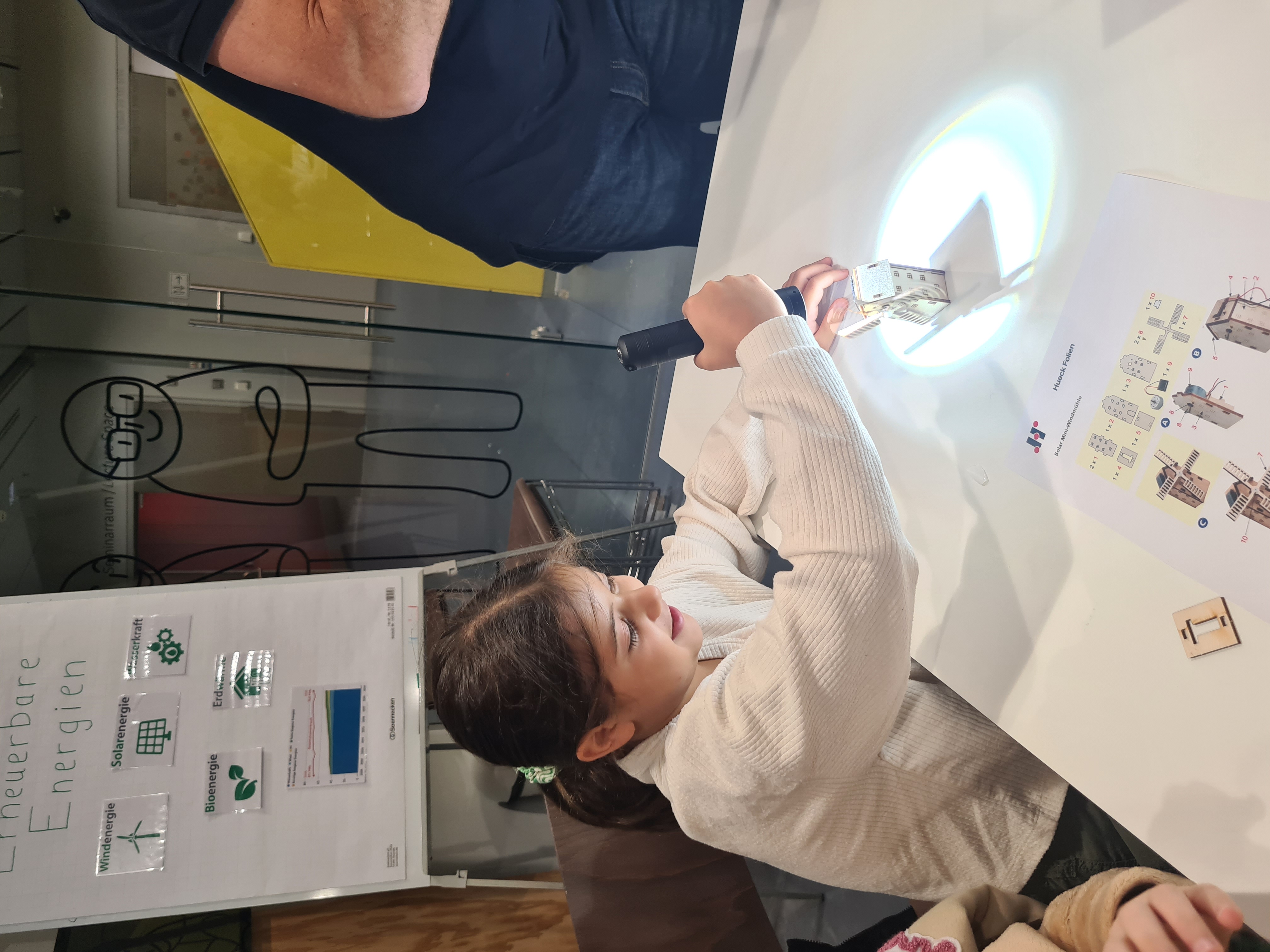 Nachhaltigkeit ist ein zentrales Thema bei Hueck Folien. An dieser Station lernten die Kinder, wie erneuerbare Energien genutzt werden und dadurch ein wichtiger Beitrag zur Nachhaltigkeit geleistet werden kann. Die Kinder erfuhren, wie Solarzellen funktionieren und wie Energie aus Sonnenlicht gewonnen werden kann. Anschließend bestand ihre Aufgabe darin, Solarenergie für ein selbst gebautes Modell zu nutzen.